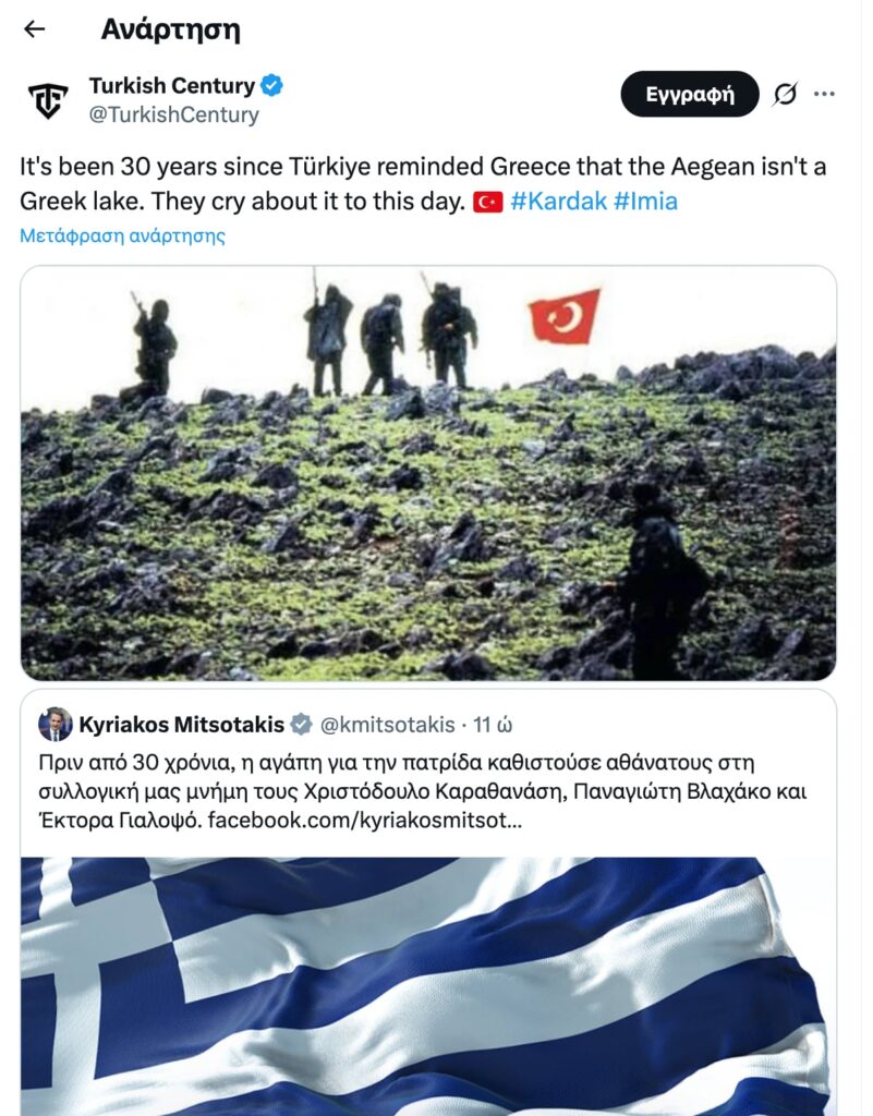 ”Έχουν περάσει 30 χρόνια από τότε που η Τουρκία υπενθύμισε στην Ελλάδα ότι το Αιγαίο δεν είναι ελληνική λίμνη!”