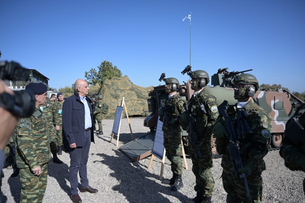 Ο Υπουργός Εθνικής Άμυνας, Νίκος Δένδιας, παρακολούθησε σήμερα, 7 Νοεμβρίου 2023, την τελική φάση της Τακτικής Άσκησης Μετά Στρατευμάτων «ΑΙΣΙΟΣ ΟΙΩΝΟΣ – 23» στο Πεδίο Βολής – Ασκήσεων «Ψηλός Στάλος» του Έβρου, παρουσία της Α.Ε. της Προέδρου της Ελληνικής Δημοκρατίας κ. Κατερίνας Σακελλαροπούλου.