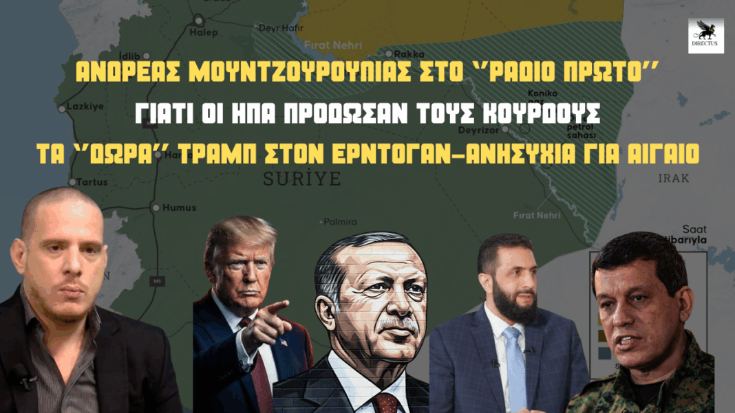 Ανδρέας Μουντζουρούλιας στο ”ΡΑΔΙΟ ΠΡΩΤΟ”: Γιατί ο Τραμπ ”χάρισε” την Συρία στον Ερντογάν: Φόβος για ”λύση” των ελληνοτουρκικών στο Αιγαίο – Ηχητικό