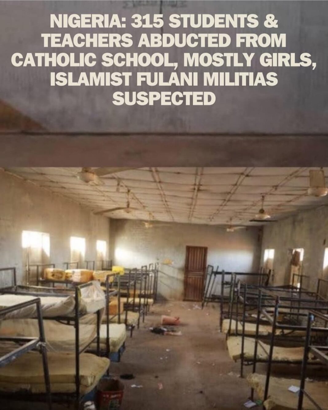Συνολικά 303 μαθητές και 12 δάσκαλοι απήχθησαν από ένοπλους κατά τη διάρκεια επίθεσης στο Καθολικό Σχολείο Αγίας Μαρίας στην πολιτεία Νίγηρα, σύμφωνα με την Χριστιανική Ένωση της Νιγηρίας.