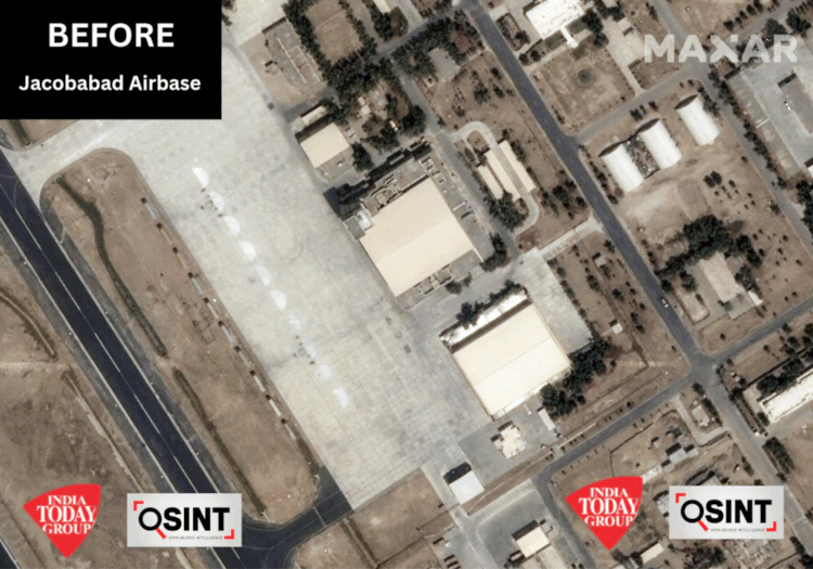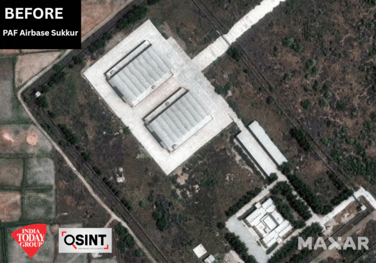 Οι δορυφορικές εικόνες που συνέλεξε η Maxar στις 10 και 11 Μαΐου, δείχνουν λεπτομερώς τις ζημιές που προκλήθηκαν στις αεροπορικές βάσεις στο Sukkur (Σιντ), Nur Khan (Ραβαλπίντι), Rahim Yar Khan (νότιο Παντζάμπ), Mushaf in Sargodha, Jacobabad (βόρεια Σιντ) και Bholari (βόρεια περιοχή Thatta).