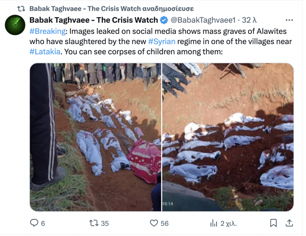 Οι ομηρικές μάχες στην Συρία συνεχίζονται αμείωτες, καθώς oι Τζιχαντιστές του Τζολάνι μαζί με Τούρκους δολοφόνους, διαπράττουν νέα γενοκτονία κατά των Αλαουιτών και των Κούρδων, ενώ το συμβούλιο των Αλαουιτών της Συρίας έκανε έκκληση στο Ισραήλ για βοήθεια.