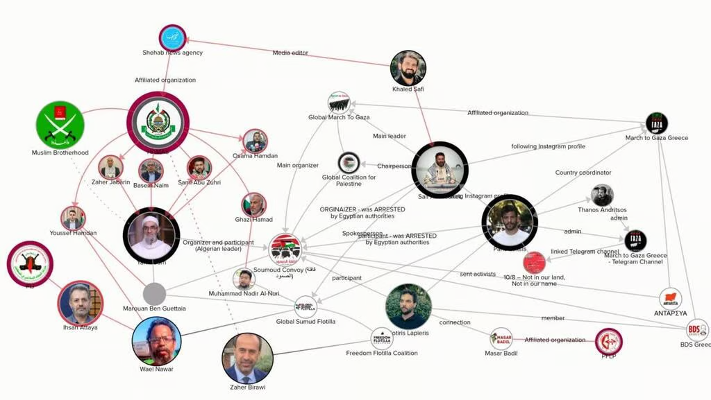 Ο στολίσκος που οργανώθηκε από την αντι-ισραηλινή ομάδα Global Sumud Flotilla — στην οποία συμμετέχουν η ακτιβίστρια Γκρέτα Τούνμπεργκ και η ηθοποιός Σούζαν Σαράντον — δεν είναι ανθρωπιστική αποστολή, αλλά μάλλον μια επιχείρηση κάλυψης που συντονίζεται από τη Χαμάς και τη Μουσουλμανική Αδελφότητα, σύμφωνα με έκθεση που εκδόθηκε από το Υπουργείο Διασποράς και Αντισημιτισμού.