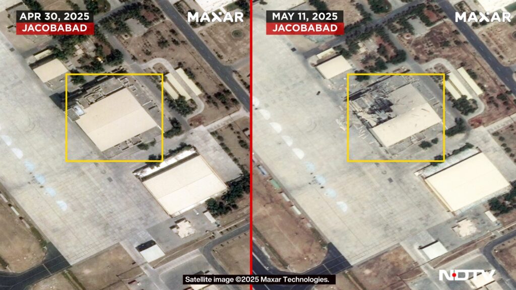 Η Ινδία έπληξε πολλές πακιστανικές αεροπορικές βάσεις κατά τη διάρκεια της «Επιχείρησης Sindoor», προκαλώντας ζημιές σε διαδρόμους, υπόστεγα και κτίρια, προκαλώντας ένα τεράστιο πλήγμα στο Πακιστάν. Το NDTV είχε πρόσβαση σε δορυφορικές εικόνες πριν και μετά από αυτές τις βάσεις – Sargodha, Nur Khan (Chaklala), Bholari, Jacobadam, Sukkur και Rahim Yar Khan.
