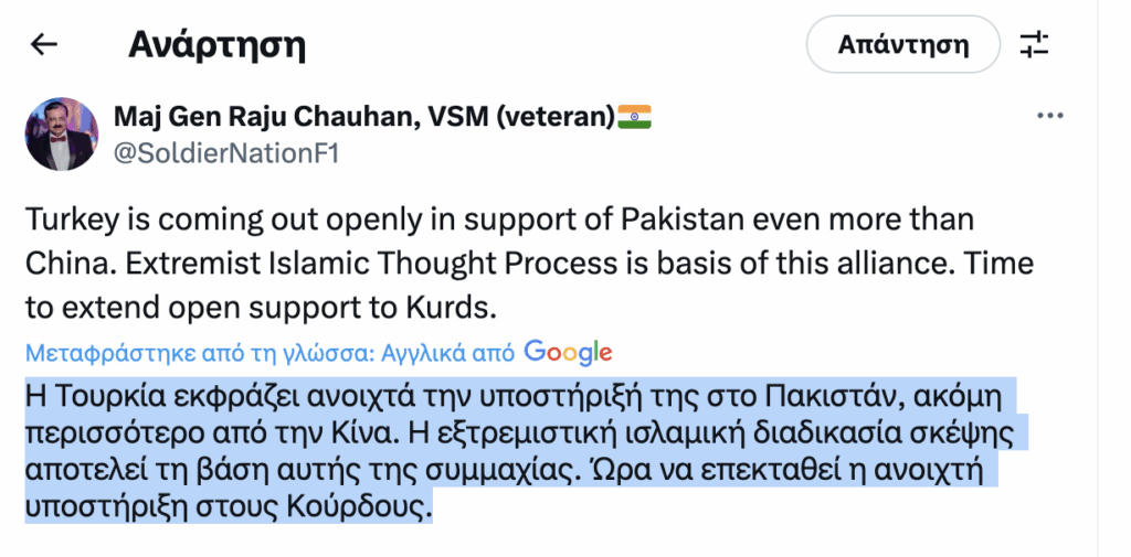 Η Τουρκία εκφράζει ανοιχτά την υποστήριξή της στο Πακιστάν, ακόμη περισσότερο από την Κίνα. Η εξτρεμιστική ισλαμική διαδικασία σκέψης αποτελεί τη βάση αυτής της συμμαχίας. Ώρα να επεκταθεί η ανοιχτή υποστήριξη στους Κούρδους.