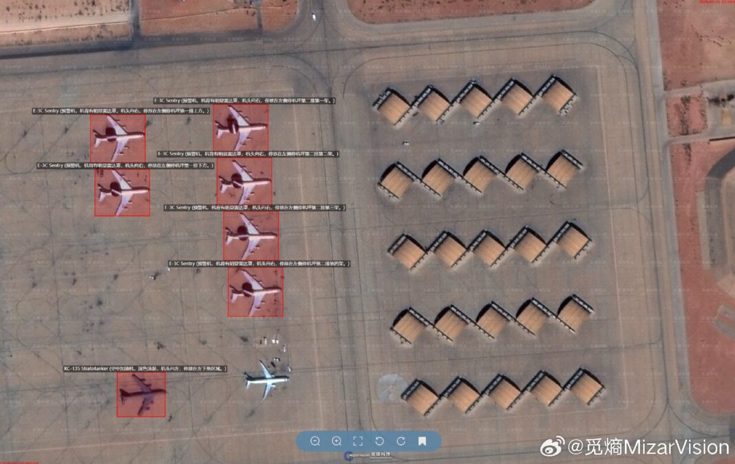Κινεζικοί δορυφόροι αποκάλυψαν ότι οι ΗΠΑ έχουν αναπτύξει έξι E-3 αεροσκάφη Sentry AWACS στη Σαουδική Αραβία από την ηπειρωτική χώρα των ΗΠΑ. Αυτά τα αεροσκάφη είναι ζωτικής σημασίας για μια επίθεση στο Ιράν, καθώς ελέγχουν το πεδίο της μάχης. Υπάρχουν επίσης 20 επιπλέον βυτιοφόρα καυσίμων σε αυτήν την αεροπορική βάση της Σαουδικής Αραβίας.