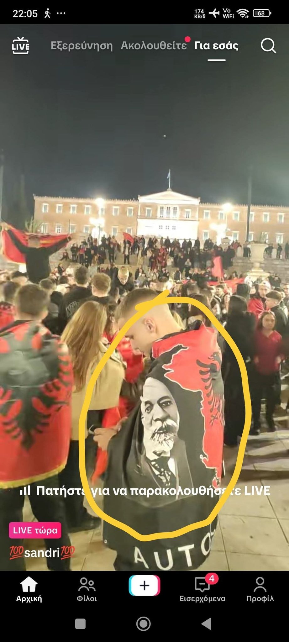 Οργανωμένες ομάδες Αλβανών που ζουν στην Ελλάδα έφτασαν με τα αυτοκίνητά τους στο Σύνταγμα, ενώ σε όλη τη διαδρομή ανέμιζαν από τα παράθυρά τους αλβανικές σημαίες.