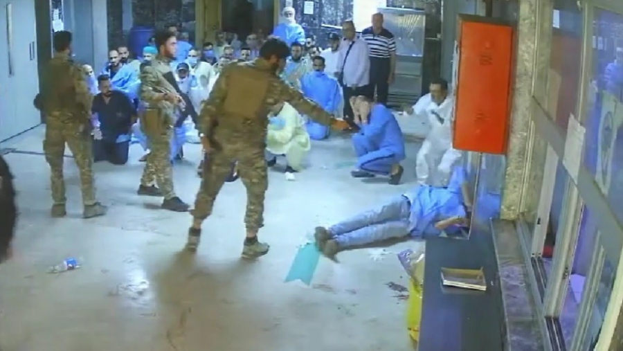 Ένα από τα πρόσφατα δημοσιευμένα βίντεο δείχνει στρατιώτες που φορούν τις επίσημες στολές του συριακού στρατού, και έναν που φορά στολή δυνάμεων ασφαλείας, να χτυπούν έναν εργαζόμενο του νοσοκομείου και στη συνέχεια να τον εκτελούν χωρίς προφανή λόγο.