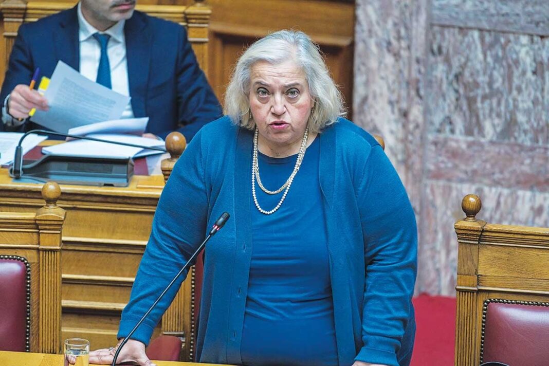 Απαντώντας σε επίκαιρη ερώτηση του Δημήτρη Νατσιού, ο οποίος κατηγόρησε την κυβέρνηση Μητσοτάκη ότι ακολουθεί την «ολέθρια πολιτική του κατευνασμού», ενώ άσκησε σκληρή κριτική και στο ΕΛΙΑΜΕΠ, η υφυπουργός Εξωτερικών ανέφερε αρχικά ότι το υπουργείο δεν έχει σχέση με τη σύνθεση του ιδρύματος «ξεπλένοντας» ταυτοχρόνως απολύτως το ΕΛΙΑΜΕΠ, λέγοντας πως «άποψη για την εξωτερική πολιτική έχουν και οι δεξαμενές σκέψεις», και όχι μόνο οι κυβερνήσεις. Την ίδια στιγμή μάλιστα ισχυρίστηκε, κόντρα στην περί του αντιθέτου άποψη των Ελλήνων, πως η ιστορική διαδρομή του ΕΛΙΑΜΕΠ «έχει θετικό αποτύπωμα», η οποία μάλιστα «τιμά» τους έγκριτους επιστήμονες που το απαρτίζουν.