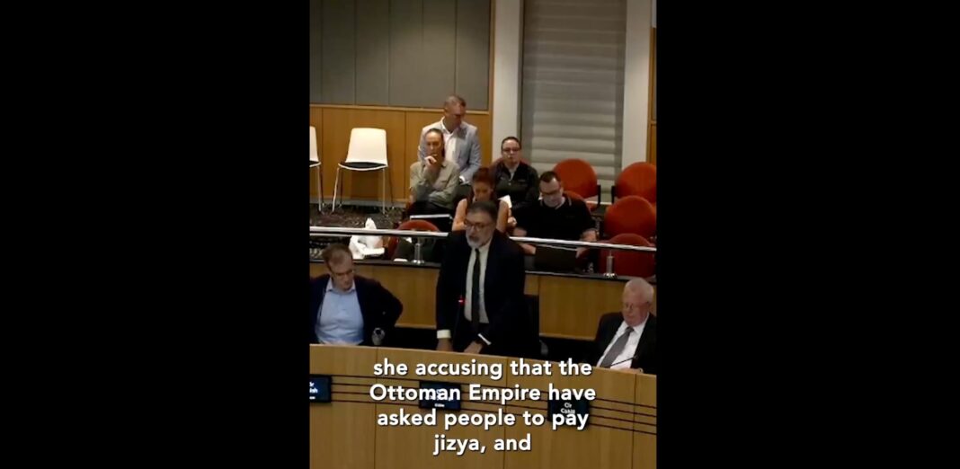Ένας ισλαμιστής δημοτικός σύμβουλος σηκώθηκε και αρνήθηκε την ύπαρξη του φόρου Τζίζια επί Οθωμανών, αποκαλώντας την «ανακριβή» πληροφορία που ήταν «προσβλητική» για την πολυπολιτισμική «αρμονία» του Δυτικού Σίδνεϊ.