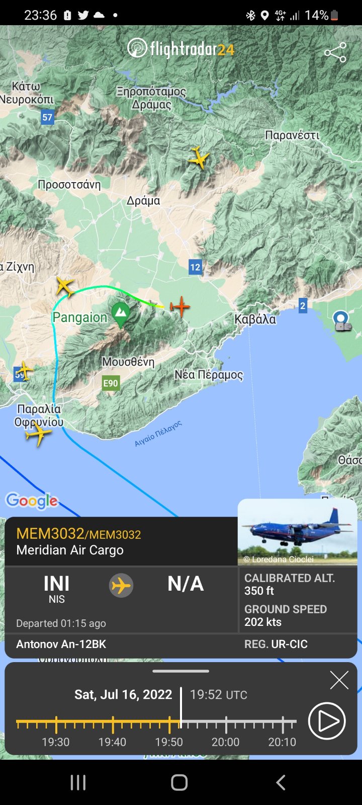 Σύμφωνα με τον διοικητή της ΥΠΑ Κωνσταντίνο Λιτσαράκο, το αεροσκάφος, που πιθανόν είναι κάργκο και συνετρίβη 40 χιλιόμετρα από το αεροδρόμιο Καβάλας πηγαίνοντας από τη Σερβία προς την Ιορδανία, δήλωσε βλάβη στο FIR Αθηνών και θέλησε να προσγειωθεί στην Καβάλα. Ωστόσο, δεν τα κατάφερε.