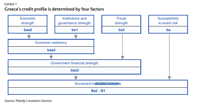 Το πιστωτικό προφίλ της Ελλάδας, όπως εξηγεί, καθορίζεται από τέσσερις παράγοντες: την οικονομική ισχύ, την ισχύ των θεσμών και της διακυβέρνησης, την δημοσιονομική ισχύ και την ευαισθησία στον κίνδυνο διάφορων (πολιτικών και οικονομικών) γεγονότων, τόσο εντός της χώρας όσο και στο εξωτερικό.