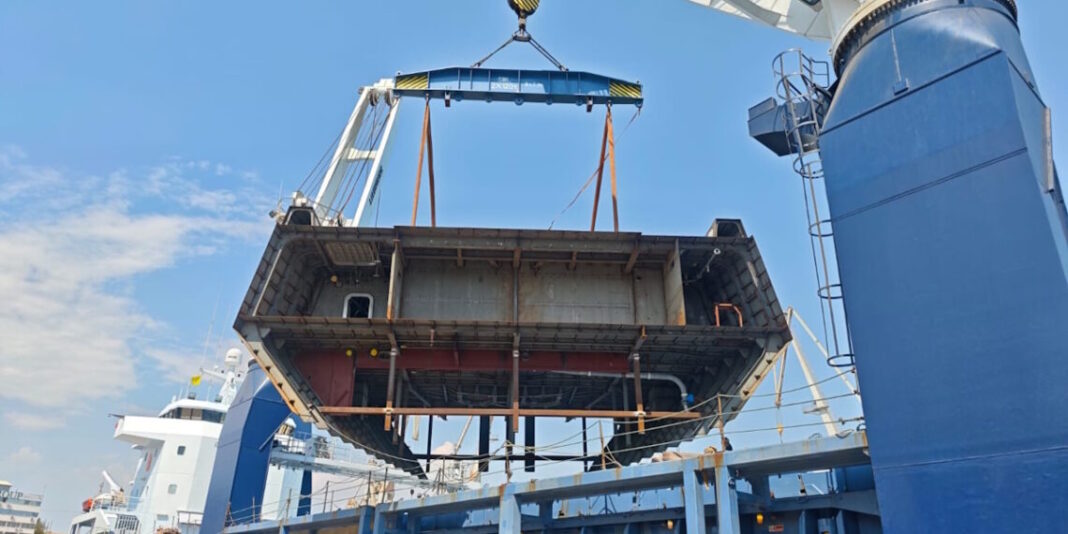 Τα 4 blocks που παραδόθηκαν για την FDI «Admiral Castex», θα μεταφερθούν στο ναυπηγείο της Naval Group στο Lorient, όπου θα παραδοθούν για να ακολουθήσουν τα επόμενα βήματα της κατασκευής της φρεγάτας.
