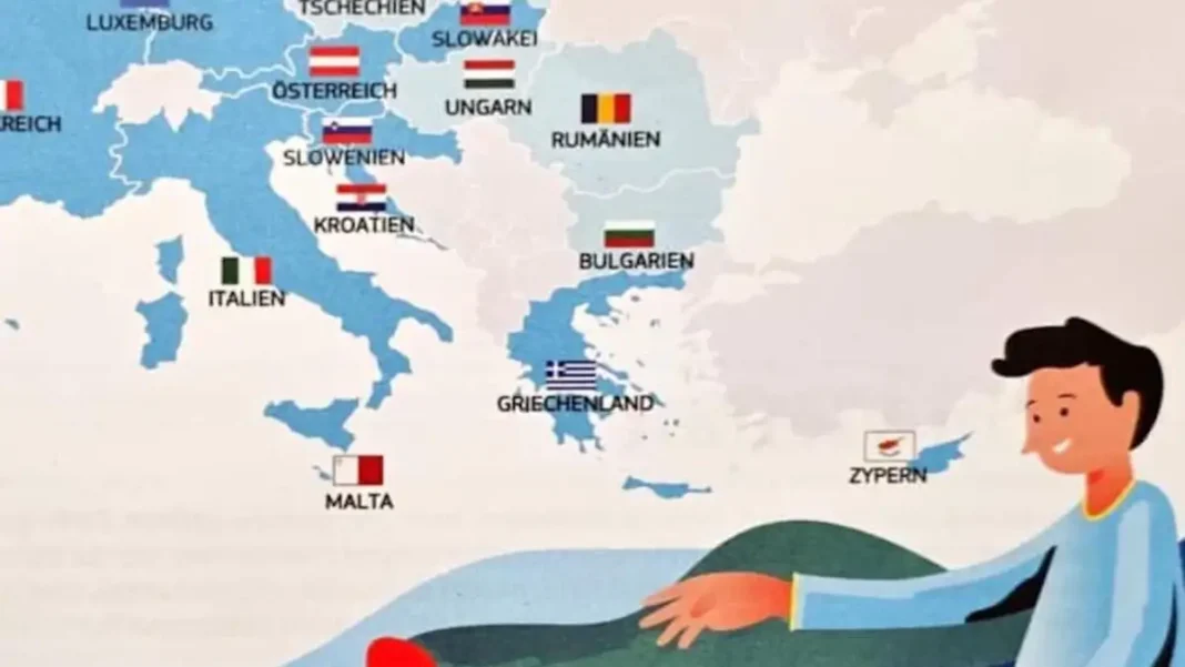 Ειδικότερα, στην πιο πρόσφατη έκδοση του Δεκεμβρίου του 2024 του δημοσιεύματος «Ανακαλύπτοντας την Ευρώπη» που διανέμει η Κομισιόν σε όλον τον κόσμο, τα νησιά του ανατολικού Αιγαίου και τα Δωδεκάνησα φαίνονται εκτός ελληνικής κυριαρχίας και έχον το ίδιο γκρι χρώμα με την Τουρκία.