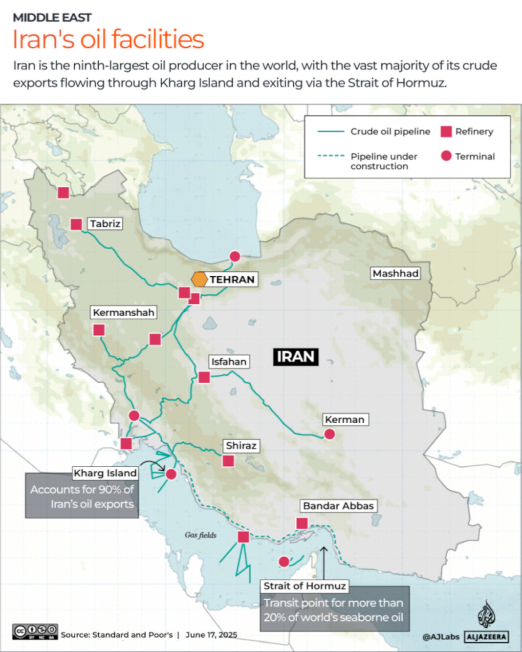 Τo Al Jazeera έδωσε δημοσιότητα έναν χάρτη με τις εγκαταστάσεις πετρελαίου και φυσικού αερίου του Ιράν: