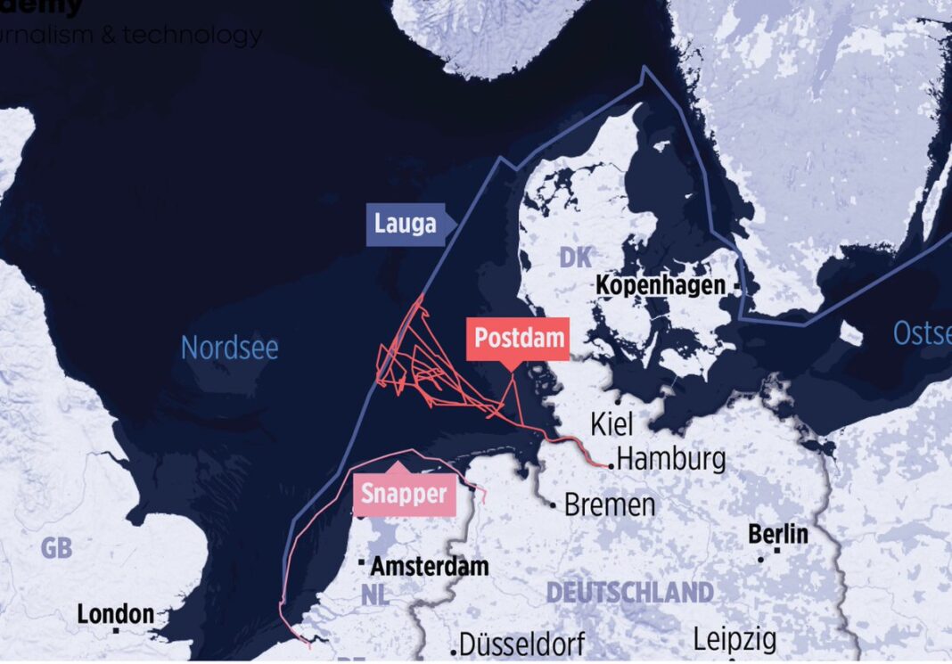 Γερμανοί φοιτητές δημοσιογραφίας ερεύνησαν τις πορείες τριών εμπορικών πλοίων με ρωσικά “ίχνη” (πλήρωμα, λιμάνια συντήρησης) και τις συνέδεσαν με υπερπτήσεις drones σε γερμανικές βάσεις και αεροδρόμια. Το ένα (HAV Snapper) ήταν χθες στο Αιγαίο, με πορεία από Βόλο για Θεσσαλονίκη.