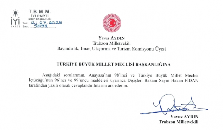 Απευθυνόμενος με γραπτή ερώτηση στον υπουργό Εσωτερικών Αλί Γερλικαγιά, ο Τούρκος βουλευτής ζητά να μάθει εάν έχει γίνει εκτίμηση κινδύνου «για τις επιπτώσεις στη δημόσια τάξη από τις Λειτουργίες που πραγματοποιήθηκαν στην Παναγία Σουμελά και από άλλες πολιτιστικές εκδηλώσεις του Πατριαρχείου», θέλοντας επιπλέον να πληροφορηθεί εάν υπάρχει συμμόρφωση με τη Συνθήκη της Λοζάνης και τους νόμους της Τουρκικής Δημοκρατίας.