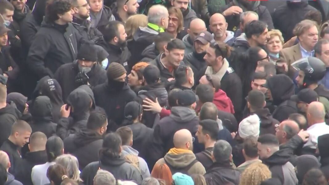 Διαδηλωτές προσπάθησαν να απωθήσουν κουκουλοφόρους και άτομα που επιχείρησαν να δημιουργήσουν οποιοδήποτε πρόβλημα στη μεγαλειώδη διαδήλωση.