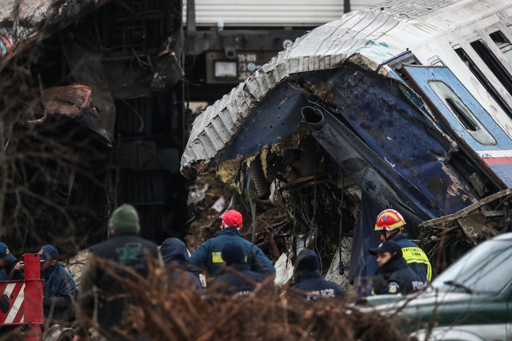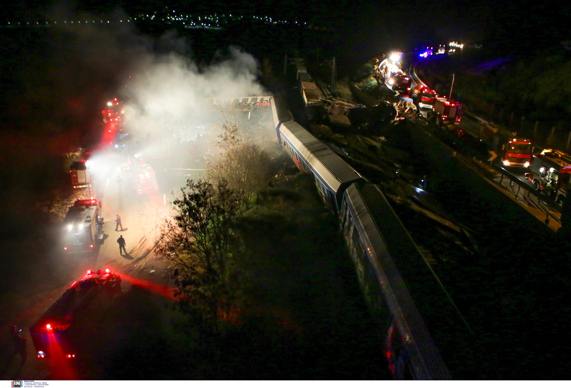 Τελευταίο βήμα να περάσω τις προστατευτικές μπάρες. Όλοι όσοι έχουν ανέβει είναι σε έξαλλη κατάσταση. Τηλεφωνώ στον γιό μου. “Έγινε ένα σοβαρό δυστύχημα στο τρένο στα Τέμπη. Μπορεί να έχει και νεκρούς. Μην ανησυχείτε. Είμαι καλά. Σώθηκα”. Οι διπλανοί μου μου ζητούν το κινητό για να τηλεφωνήσουν στους δικούς τους. Προσπαθούν να θυμηθούν τα νούμερά τους. Μα κατά κανόνα δεν τα καταφέρνουν, παίρνουν λάθος νούμερο και απελπίζονται. Κάποιοι άλλοι με κινητά τηλεφωνούν στους δικούς τους κλαίγοντας και φωνάζοντας.