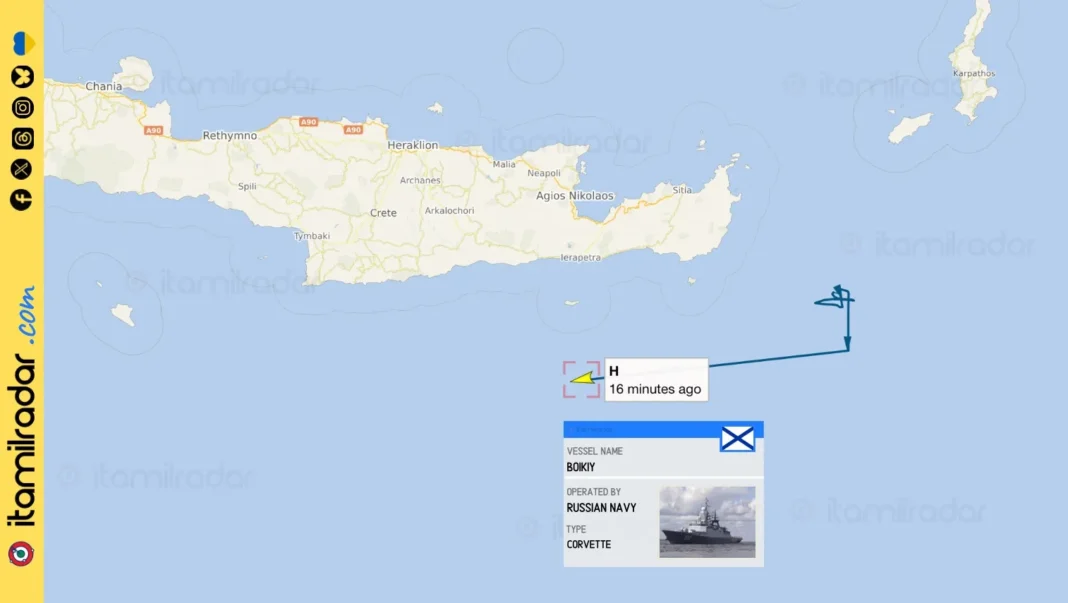 Είναι ενδιαφέρον ότι χθες το Boikiy παρατηρήθηκε να κάνει ελιγμούς μπρος-πίσω νοτιοανατολικά της Κρήτης σε αυτό που φαινόταν να είναι μια επιχείρηση ανεφοδιασμού σε εξέλιξη.